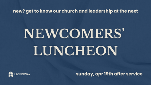 If you are new to LivingWay (attending for less than a year) or not part of a DC and haven’t had the chance to attend a Newcomer’s Luncheon yet, we encourage you to join us to fellowship with members of the staff and each other. Grab your lunch from the Fellowship Hall and make your way over to the Overflow Room after the baptism ceremony.