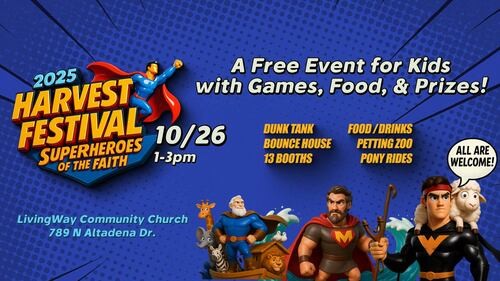 Join us for our annual Harvest Festival! For those who have not heard of Harvest Festival, we started this event after COVID as a means to bring church members together, but has evolved as an opportunity to provide an alternative event for Halloween for the families and an outreach event for our local community. Please invite your friends, family, and others to this event. All are welcome!